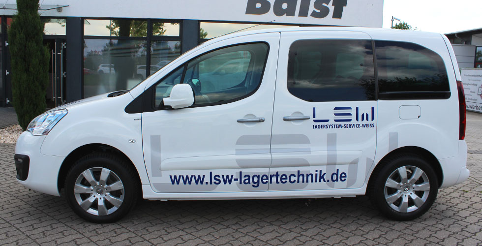Einheitlich und im Corporate Design der Firma, Lagersystem-Service-Weiss aus Bad Dürkheim, haben wir den kompletten Fuhrpark gestaltet und anschließend foliert.