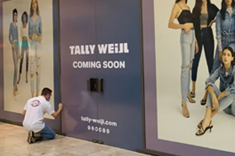 Schaufensterbeklebung in der Rhein-Galerie für Tally Weijl